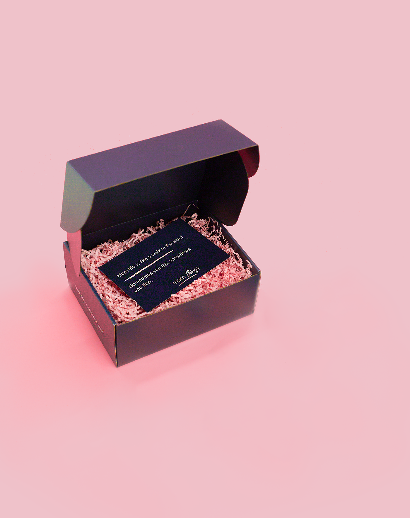Though you’ll never know what to expect in our signature navy and rose gold box, you can count on the Mom Things team to keep you stocked with everything you didn’t know you needed.